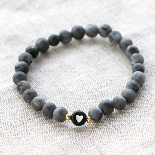 Abalorios letras acrílicas corazones Negro-blanco