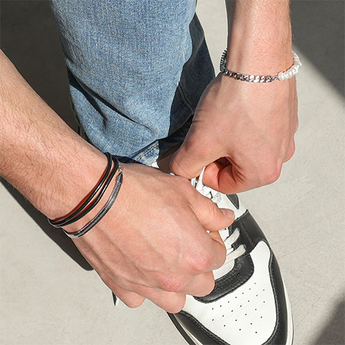 En 2023, no sólo se verán pulseras para hombre, sino también collares y pendientes, como los aros. Utiliza materiales naturales como el cuero, piedras naturales y perlas para crear joyas muy chulas. Combine estos materiales con la cadena jasseron para crear una línea de ¡joyería masculina a la última en tu colección!