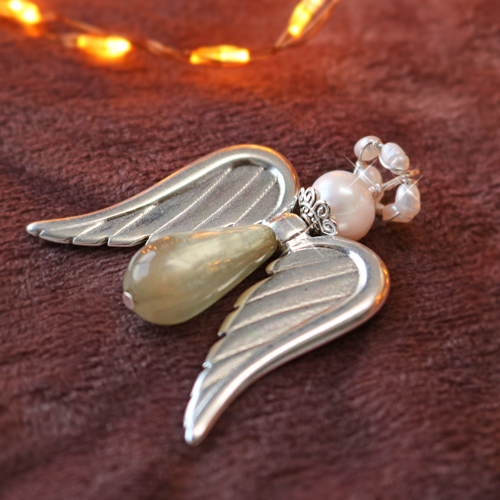 Hacer ángeles de la suerte con componentes de joyería puede parecer difícil, ¡pero no lo es! Estamos encantados de ayudarte, mostrarte lo que necesitas y qué angelitos puedes hacer. Los materiales necesarios para hacer los angelitos: bastones metálicos, abalorios Polaris Elements o cuentas facetadas gota, alas de ángel metálicas DQ, perlas de agua dulce o abalorios facetados Strass rondeles o entrepiezas metálicas DQ, un alicate cortador y un alicate de punta redonda. Para empezar, enhebra una cuenta facetada en forma de gota en un bastón metálico y luego agrega los otros artículos en el orden que prefiera. Para la cabeza puedes usar perlas de agua dulce o cuentas facetadas, pero por supuesto pueden ser otras también. Cuando hayas terminado de enfilar, corta el bastón aproximadamente un centímetro por encima de la última cuenta. Dóblalo con los alicates de punta redonda para crear un ojal. Y eso es todo, ¡buena suerte!