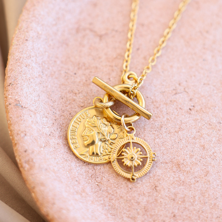 Fornituras Acero inox extención de cadena moneda 4mm Dorado