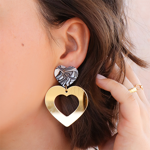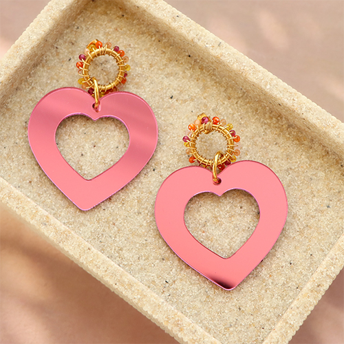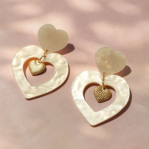 • Pendientes Acero Inox corazón relieve con anilla Dorado