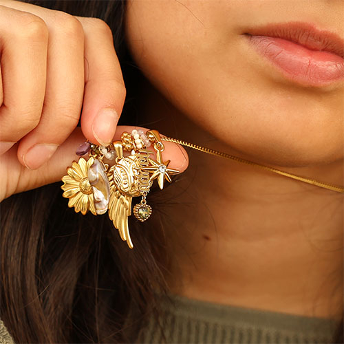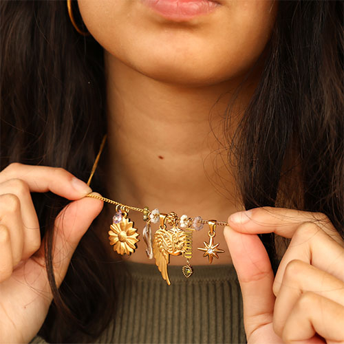 Esta nueva colección de dijes y colgantes de acero inoxidable tiene todo para crear collares de tendencia y de impacto. Con opciones como estrellas, conchas, flores, alas y monedas, ¡aportarás sin esfuerzo un estilo único a tu colección!