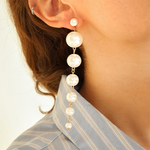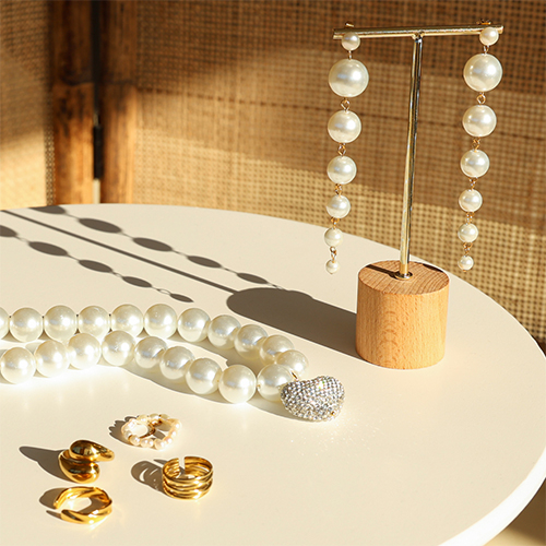 Pendientes Acero Inox perlas 8mm Dorado-blanco perla
