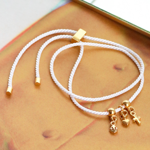 La nueva colección con cordón trendy tejido es ideal para el diseño de pulseras. Para darte unas cuantas ideas hemos creado unas chulas pulseras con colgantes. Por ejemplo, puedes deslizar un colgante con anilla en el cordón. Posteriormente, con ayuda de una anilla puedes unir tu colgante favorito de metal DQ o latón TQ. La pulsera se puede cerrar de innumerables maneras, pero hemos elegido cerrar con un abalorio. Simplemente pasa los dos extremos del cordón por el abalorio y el cierre está listo. Con este sistema siempre podrás ajustar la pulsera a un tamaño ideal, cambiando la cuenta.Tip: ¡También puedes utilizar el cordón trendy tejido para crear un cordón gafas de sol!