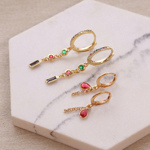 Pendientes criollas zirconia arcoíris con anilla Oro