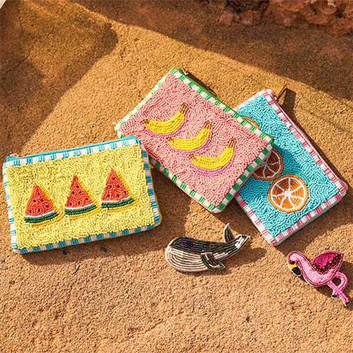 ¡Estos nuevos Tesoros Hechos a Mano de la India de BY31® son imprescindibles para tu colección! La gama incluye exclusivos bolsos de playa, neceseres y monederos – hechos a mano, de gran calidad, con un bonito forro interior y decorados con coloridos abalorios. Perfectos para una presentación veraniega en tu negocio o tienda online. ¿Ya tienes un favorito de la colección BY31®?