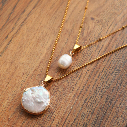 BQ Perlas de agua dulce colgante redondo/gota Dorado-blanco natural