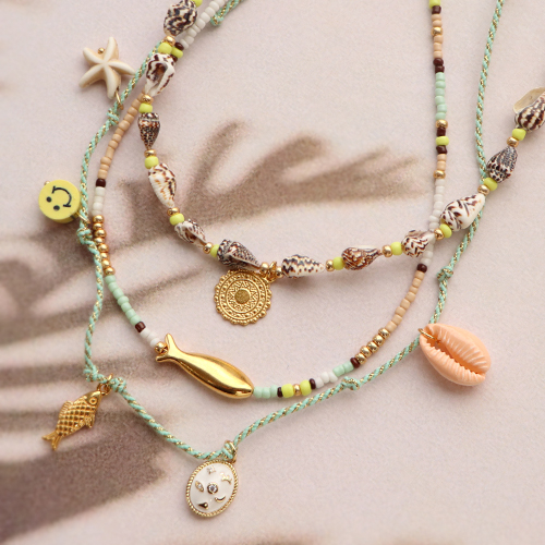 Con estos preciosos colgantes y abalorios metálicos DQ en dorado y plateado podrás crear los collares más chulos. Utiliza cadenas de jasseron o alambre metálico e incorpora diversos materiales naturales a tus collares, como las originales conchas y piedras naturales. También opta por los abalorios rocalla en colores veraniegos como el verde limón o el turquesa y selecciona los colgantes en forma de pez, concha, sol o estrella de mar para conseguir el ¡look playero más novedoso!