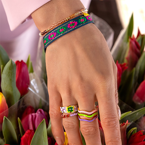 ¡Las flores son tendencia esta primavera! Cuando diseñes tu colección de primavera, aprovecha esta tendencia e incorpora elementos florales en todas tus joyas. Elige por ejemplo abalorios y colgantes con forma de flor, o crea tus propias flores con cuentas de cristal rocallas para un bonito collar. No olvides una cinta para el bolso que, por supuesto, también llevará flores. ¡Éxito garantizado!