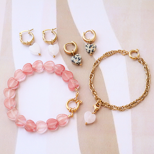 ¡Nos encanta la nueva colección de piedras naturales! Por eso nos pusimos manos a la obra con diseños coloridos de joyería. En este inspirador set, hemos combinado las piedras naturales en forma de corazón y estrella con varias fornituras de joyería en acero inoxidable de color dorado. ¿Qué necesitas para hacer estos pendientes de moda? Para esto necesitas una fornitura para pendientes en acero inoxidable, un bastón metálico, una cuenta de acero inoxidable, un alicate de punta redonda y, por supuesto, tu piedra natural favorita. Para esto tendrás que enfilar los abalorios en el bastón metálico y luego crear un ojal con el alicate de punta redonda. Posteriormente monta el colgante en el componente del pendiente y ¡listo!. También combina múltiples piedras naturales con un cierre de anilla y perno de acero inoxidable para crear una pulsera que no pasará desapercibida.