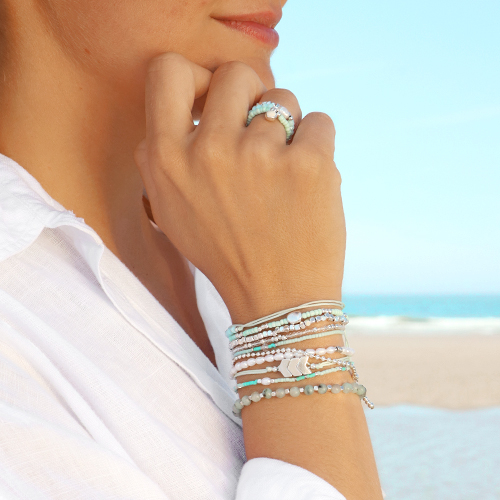Con las mini cuentas y las anillas, puedes hacer fácilmente elegantes pulseras, collares, anillos y tobilleras. Lo mejor de esta joya es que puedes llevar varias al mismo tiempo para estar más a la moda. Utiliza diferentes tipos, tamaños y colores de mini cuentas para crear infinitas combinaciones. Puedes variar las cuentas Miyuki delica con mini perlas de agua dulce, piedras naturales o cuentas faceteadas. Crea un punto de luz en el centro de la pulsera ensartando una cuenta más grande entre las mini cuentas. Completa tu pieza de joyería con un bonito cierre que se puede asegurar con una anilla metálica DQ. Para hacer una bonita pulsera, puedes combinar las mini cuentas con un bonito hilo macramé. Asegura las cuentas colocando una chafa en ambos extremos y termina con un nudo corredizo. Para hacer los anillos, la mejor opción es utilizar hilo elástico.