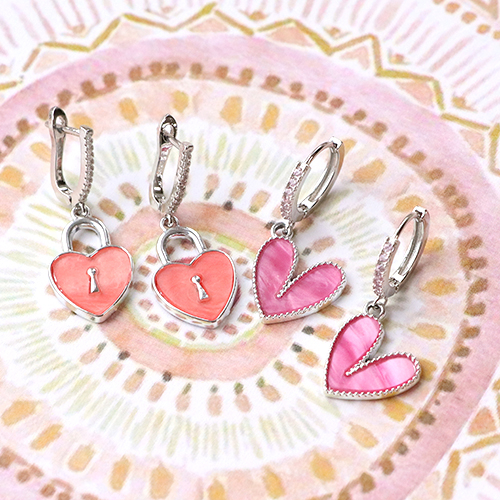 Colgantes de resina cierre corazón Plateado-rojo coral