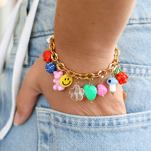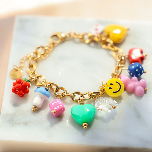 Con los novedosos abalorios acrílicos de dados y corazones, podrás crear las joyas más bonitas. Las cuentas están disponibles en varios colores. Combina estas cuentas acrílicas con las populares setas, los smileys y las frutas para conseguir un look divertido. Crea una pulsera con colgantes o enfila un collar con diversos abalorios.