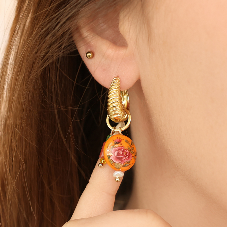 • Pendientes Trendy criolla esmalte 15mm Rosa-dorado