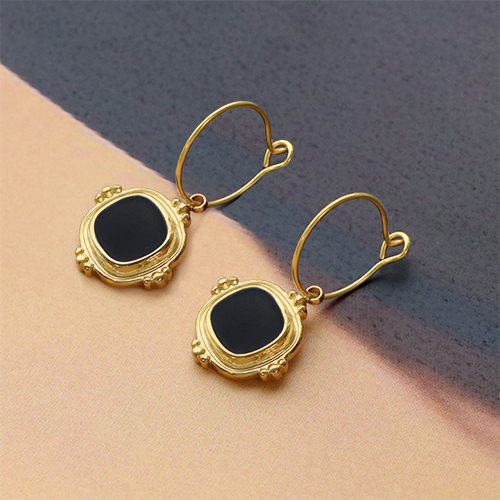 Colgantes Acero Inox cuadrado esmalte Dorado-negro