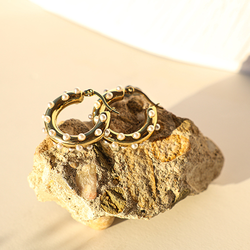 • Pendientes Acero Inox criollas con imitación de perlas Dorado