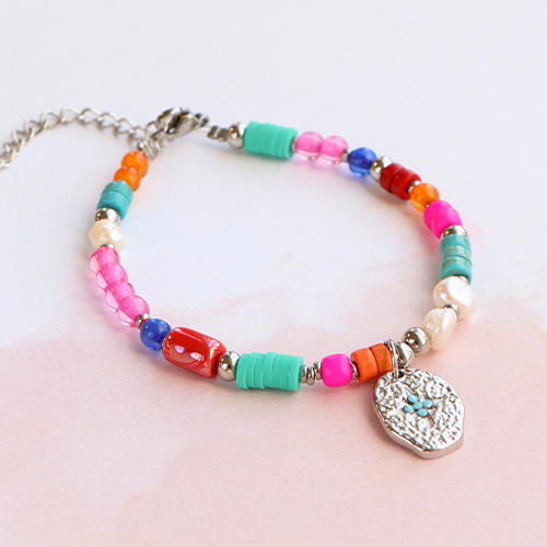 Los más novedosos colgantes de acero inoxidable con esmalte permiten crear distintos tipos de joyería. Por ejemplo, coloca los colgantes en los pendientes o diseña una colección de pulseras. Para ello, utiliza hilo metálico y enfila varias cuentas, como abalorios Polaris, cuentas de cerámica tubo y perlas de agua dulce. Termina la pulsera con un bonito cierre y una cadena de extensión. O utiliza un cordón estilo marino que se cierra con un nudo corredizo. Selecciona varios colgantes y ¡tu pulsera estará lista!