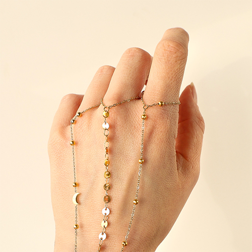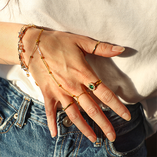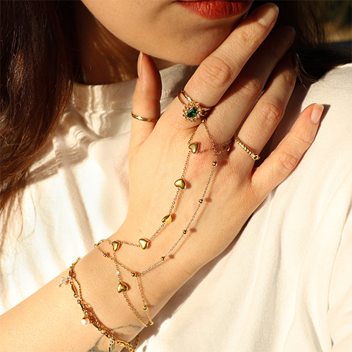 Nuestra nueva colección de pulseras anillo de acero inoxidable es perfecta para diseñadores de joyas que quieren ampliar su catálogo de forma rápida y con estilo. Disponible en diferentes variantes con piedras, corazones, luna y estrella, totalmente en tendencia para primavera y verano. Listas para usar, de acero inoxidable, ideales como complemento clave para tu colección. ¡COMPRA YA!