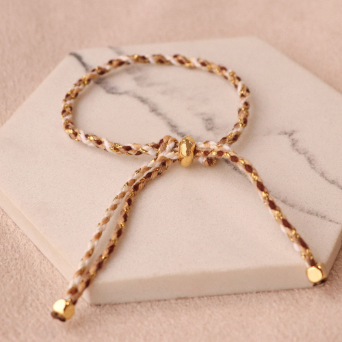 • Cordón trenzado trendy 2mm Dorado-marrón