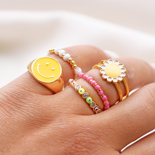 Anillos Must-have esmalte smiley Rosa-dorado