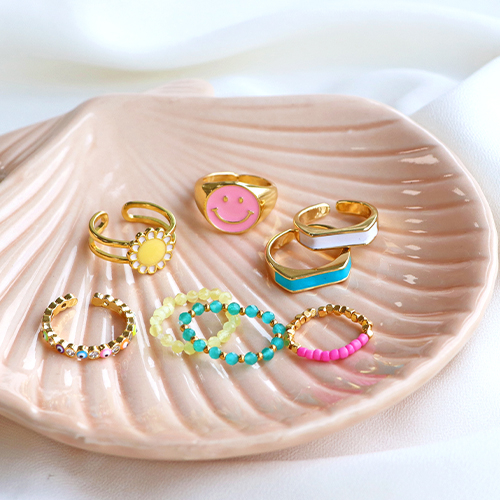 Ponte creativa con los anillos con esmalte