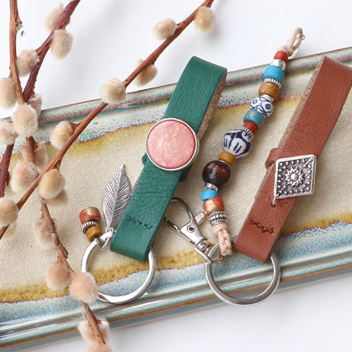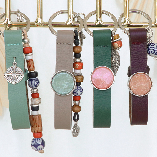 Lo mejor de los artículos Cuoio es que pueden personalizarse completamente. Para crear tu propia y exclusiva colección Cuoio, empieza por elegir un color. A continuación, puedes colocar engastes con un cabuchón pegado en el llavero, pero también puedes hacer muchas otras cosas. Puedes coger, por ejemplo, un hilo encerado y ensartar en él cuentas de cerámica, cuentas de madera y colgantes. Con un simple lazo y, posiblemente, una trenza, puedes fijarlo al llavero. Para añadir un toque extra a tu llavero, puedes hacer colgantes ensartando cuentas en un bastón metálico, o colgar un colgante de una anilla. Para facilitar la fijación o la retirada, fija un gancho a la anilla del llavero. También puede fijar los colgantes directamente al llavero de cuero para conseguir un estilo único. ¡Da rienda suelta a tu creatividad!