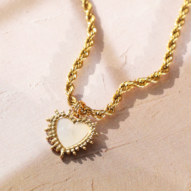 Colgantes Acero Inox concha corazón Dorado-blanco (color natural)