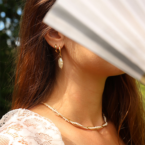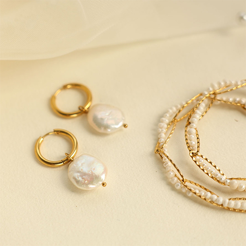 • BQ Perlas de agua dulce moneda Blanco nacar