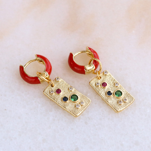 • Pendientes Trendy criolla esmalte 15mm Rojo-dorado