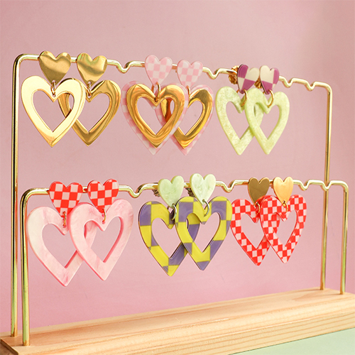 Expositor de Joyería para pendientes con 2 hileras Madera natural - dorada