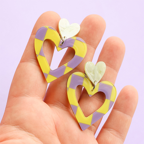 • Colgantes de resina corazón Púrpura-verde lima