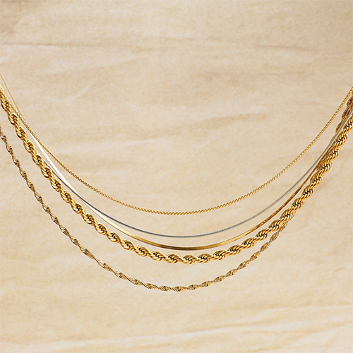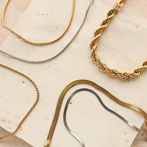 Descubre el encanto de nuestra nueva colección de collares y pulseras de acero inoxidable. Disponibles en diversas variantes de estilo, como redondos y torcidos. Perfectos para combinarlo con otras joyas y crear una preciosa colección primaveral.