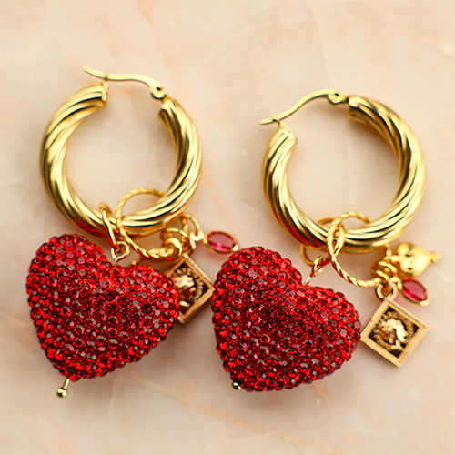 • Abalorios de cristal pintados a mano fresa Rojo-blanco