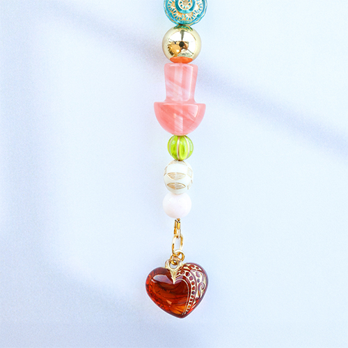 • Abalorios acrílicos lazo con campanas navideñas Marrón coñac-dorado