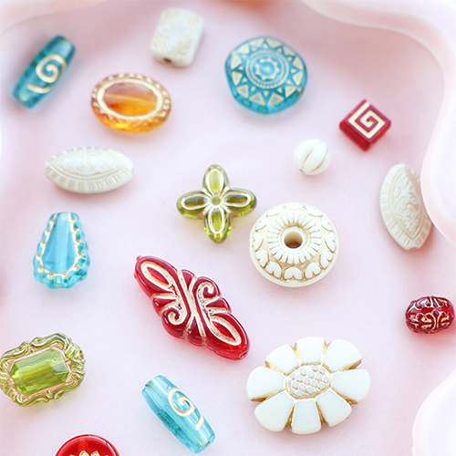 • Abalorios acrílicos rectángulo con flor Blancuzco-dorado