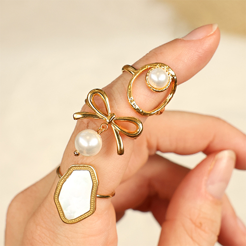 Anillos Acero Inox lazo con perlas Dorado-blanco