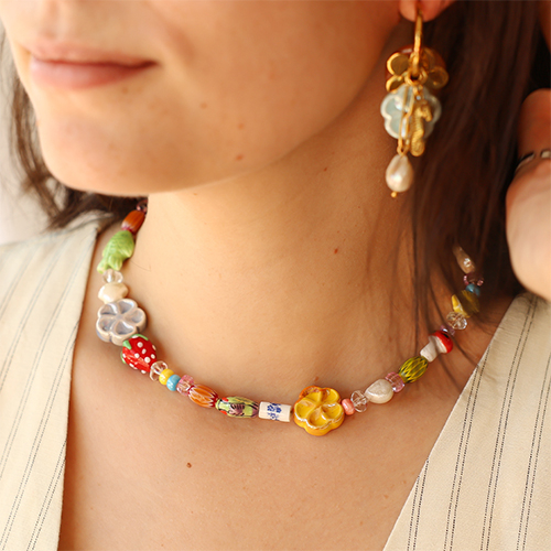 Crea collares y pendientes gruesos con abalorios de cerámica griega DQ flor
