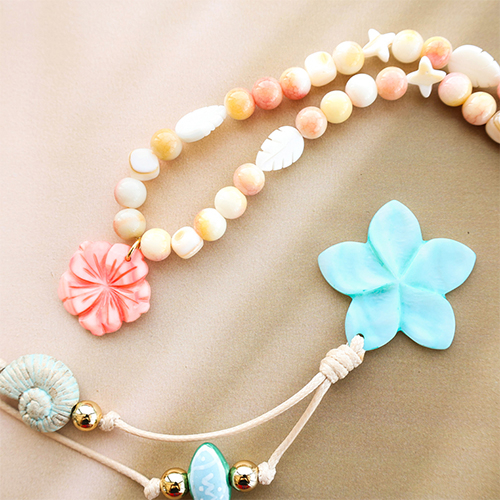 • Abalorios conchas cuadrado Blanco-arena marrón