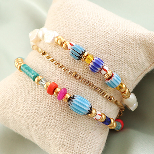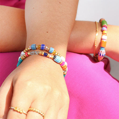 Estos coloridos abalorios millefiori con rayas son nuevos en la colección y perfectos para incorporar a pulseras boho de moda. Combina cuentas millefiori con piedras naturales, cuentas Miyuki y rocallas de cristal, ¡y da rienda suelta a tu creatividad!