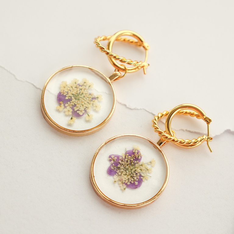 Colgantes y entrepiezas con flores secas